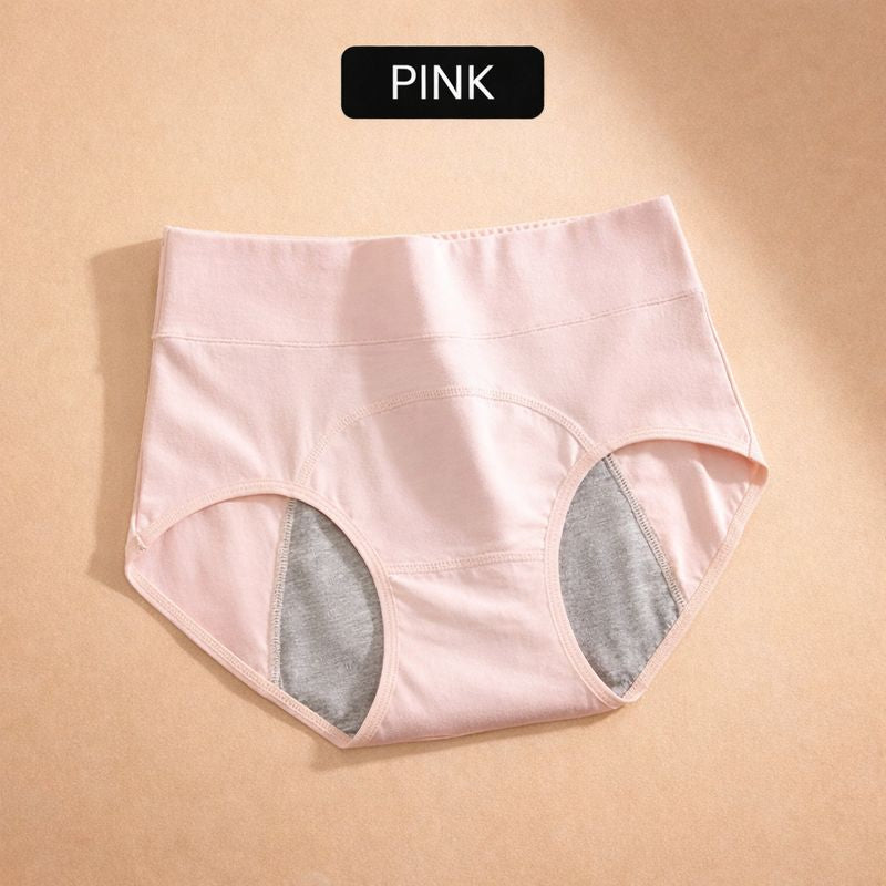 Der Schrittbereich besteht aus mehreren Schichten: Eine feuchtigkeitsableitende Schicht (direkt an der Haut), eine saugstarke Speicherschicht und eine wasserundurchlässige Membran außen. Das verhindert Auslaufen zuverlässig. Für sehr starke Tage empfehlen wir den SafeFlow als Backup zur Tasse/Tampon, an normalen/leichten Tagen reicht er solo.
